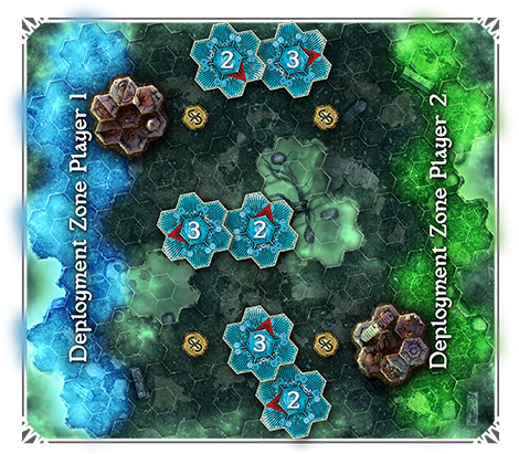 Player Deployment zones. Which Hexons do the players place their Miniatures on in "Step III: Deployment"